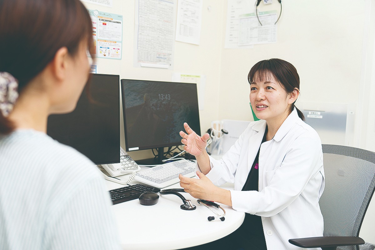 また、里紗先生が担当する内科では風邪などの一般的な疾患に加え、貧血や生活習慣病、アレルギー、妊婦の予防接種など幅広く対応。