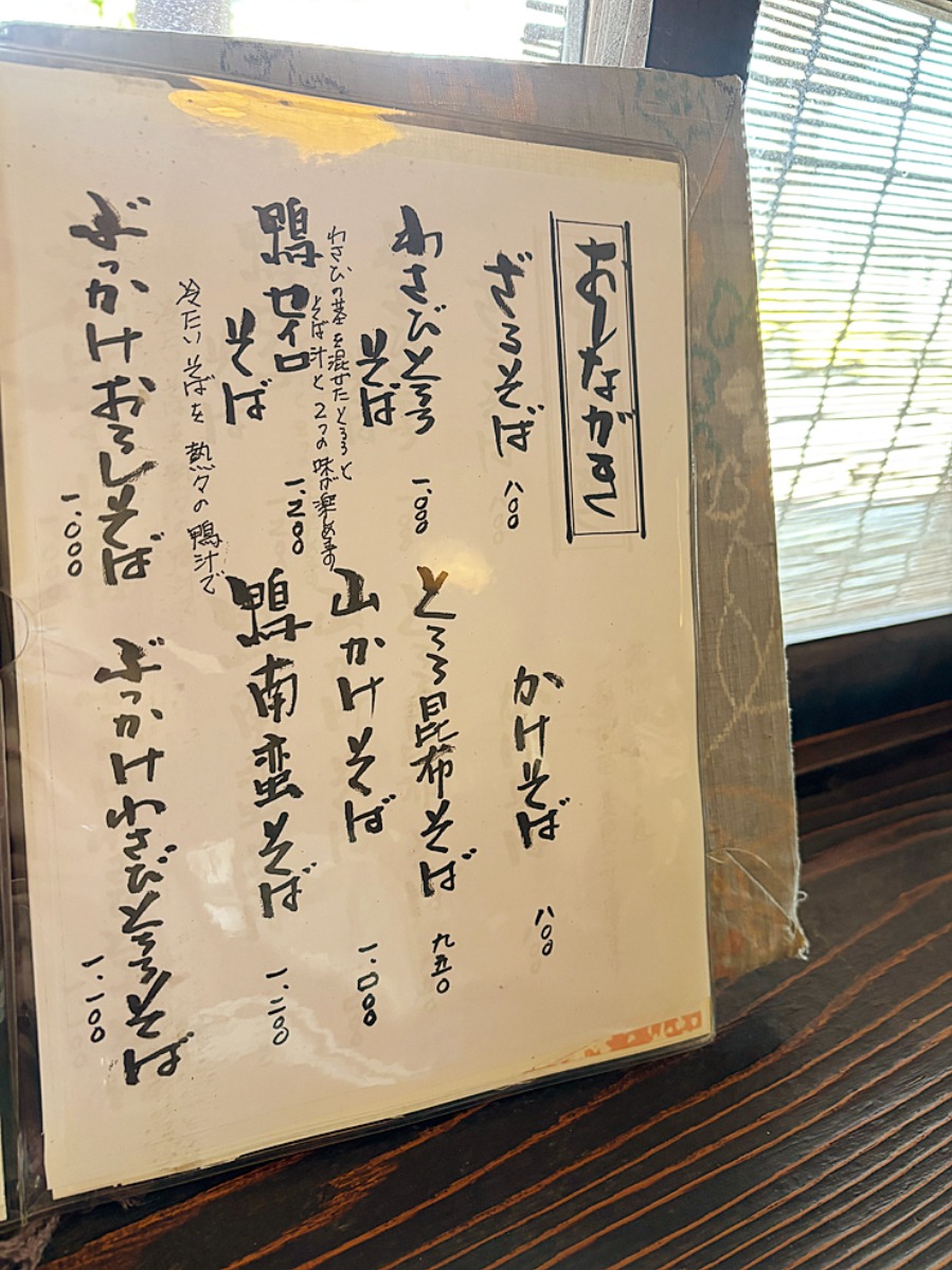こちらがお蕎麦のメニューです。