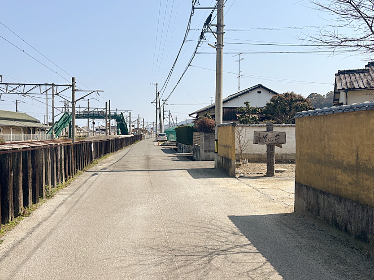 線路沿いを走るとお店の看板が見えてきます。