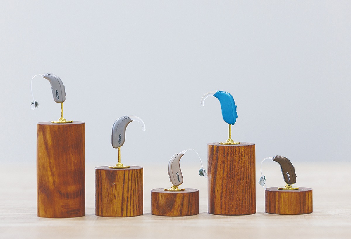 ▲北欧メーカーのスタイリッシュな補聴器も多数取り揃えている