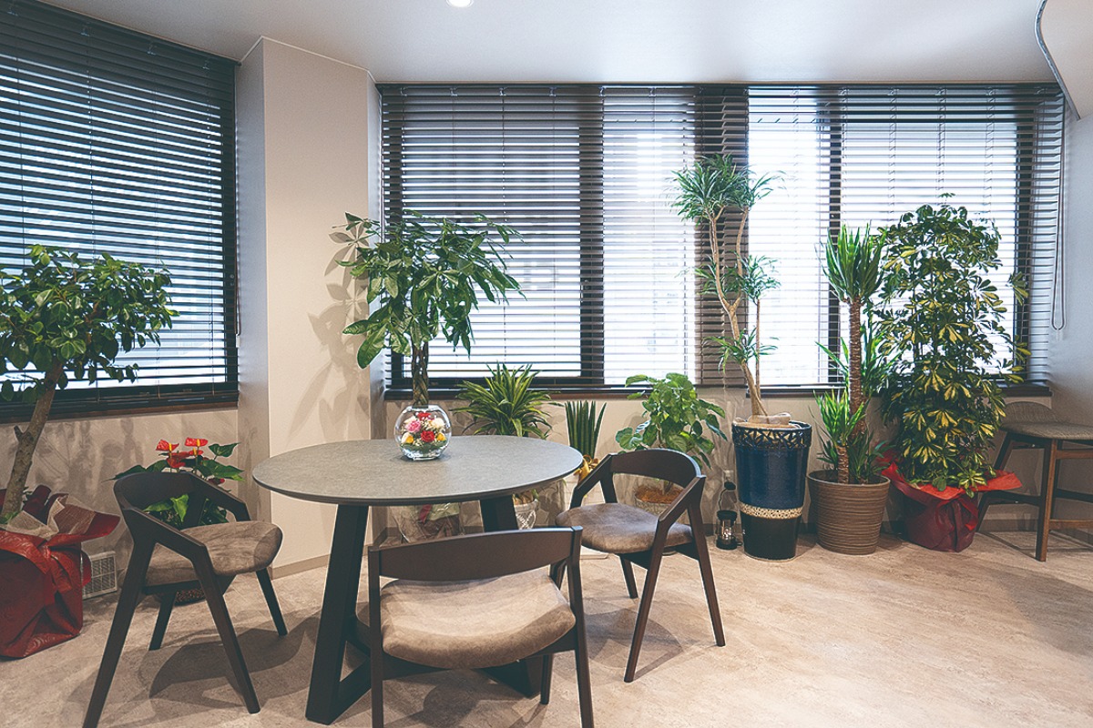 ▲シックで落ち着きのある待合室が、訪れる人の心を優しく包み込む