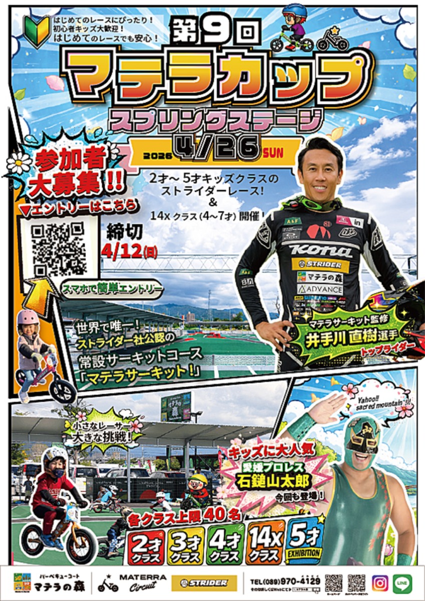 「マテラの森」常設のストライダーエリアにて、未就学児を対象としたランニングバイクイベント「マテラカップ2026スプリングステージ」が開催されます。