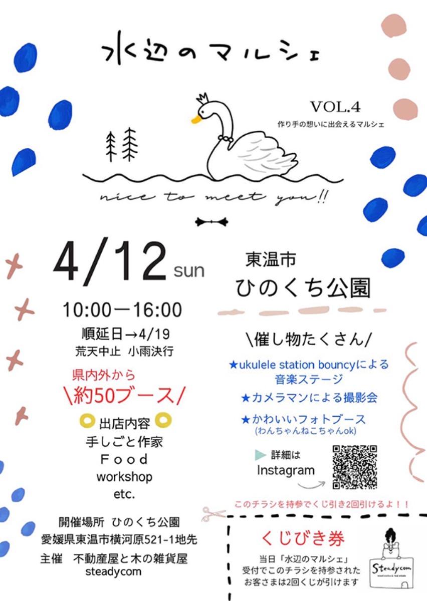 春の訪れとともに、愛媛県東温市の重信川樋口公園で「水辺のマルシェ VOL.4」が開催されます。