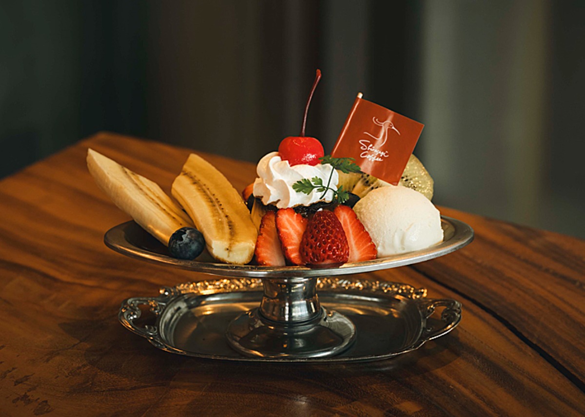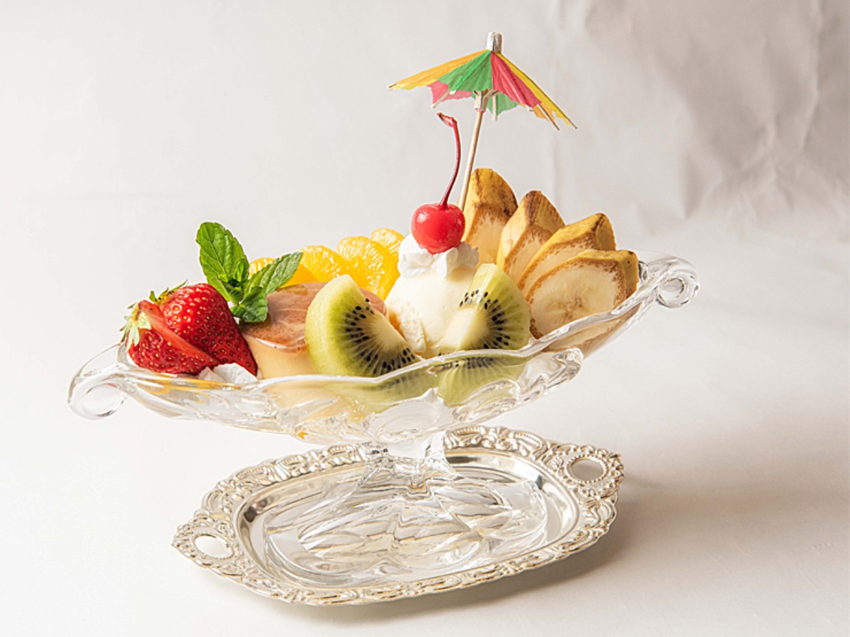 柔らかめのプリンをたっぷりのフルーツが囲う豪華なデザートメニュー。