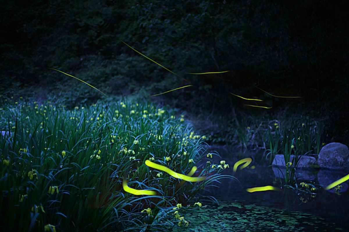 蛍が最も美しく舞うのは、日が沈んでしばらく経った午後7時半から9時ごろ。