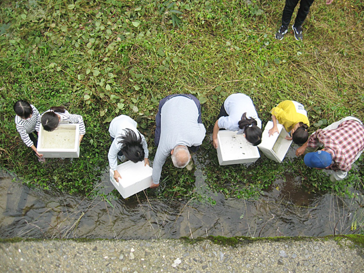 このイベントの大きな特徴は、地域の子どもたちや育成会のメンバーが大切に育てた蛍の幼虫が放流されていることです。
