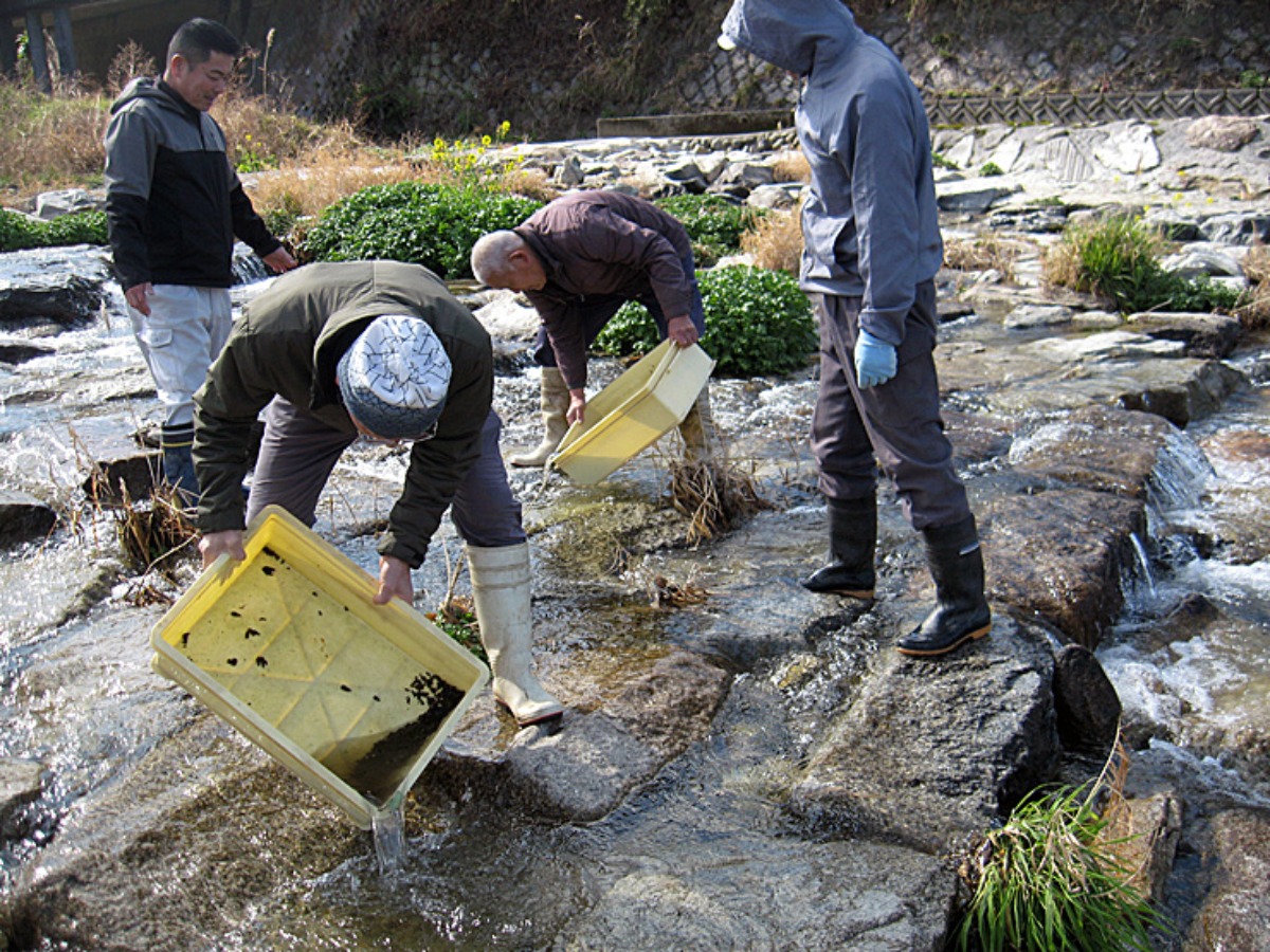 正岡小学校の3年生たちは、1年を通じて蛍の幼虫をお世話し、夏休みや冬休みには自宅へ持ち帰って愛情を注いで育てています。