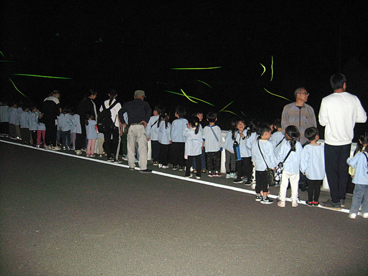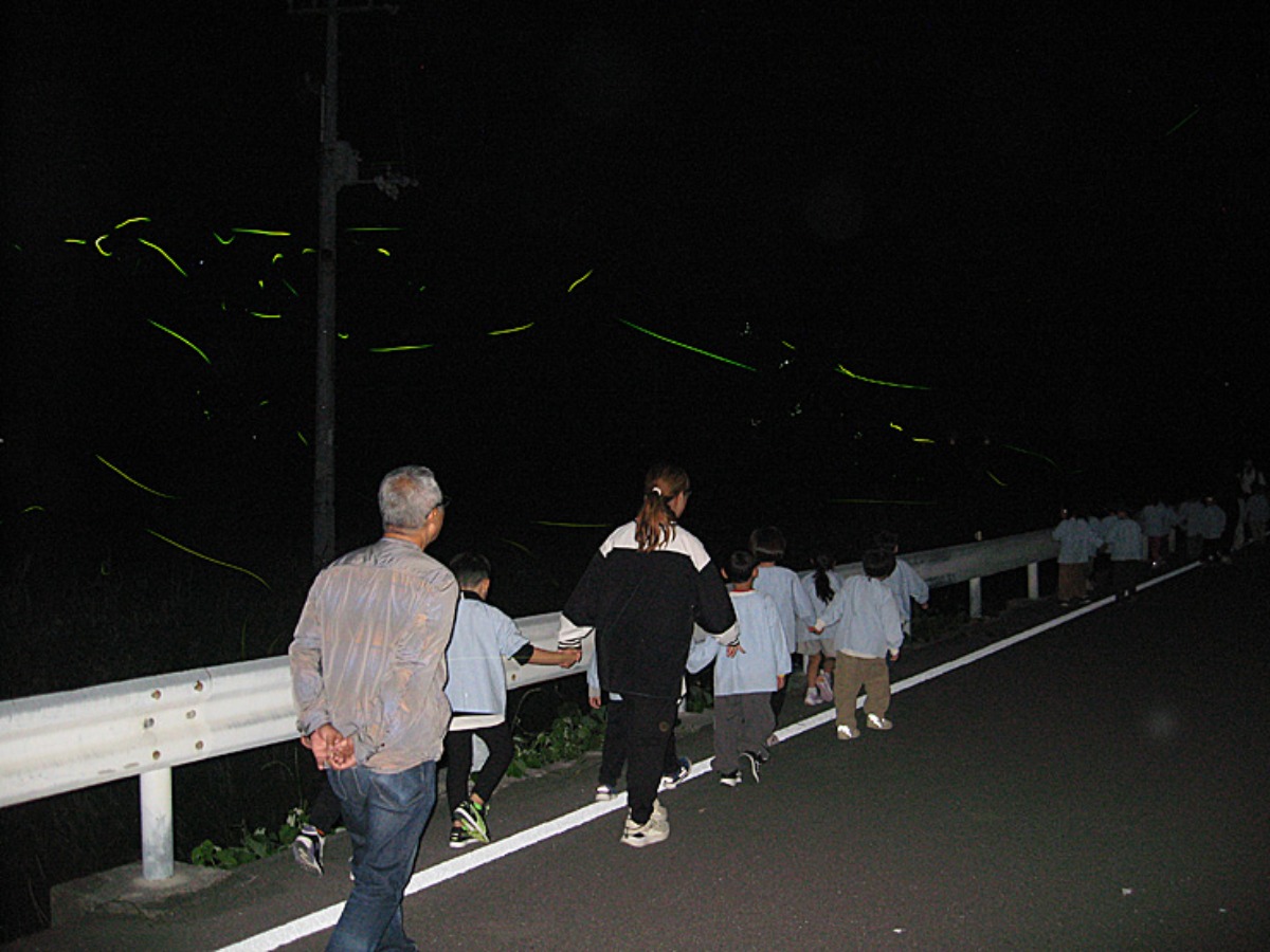 8月、10月、3月に放流された幼虫は、5月中旬から蛍となり、成長の証として夜空に光を放ちます。