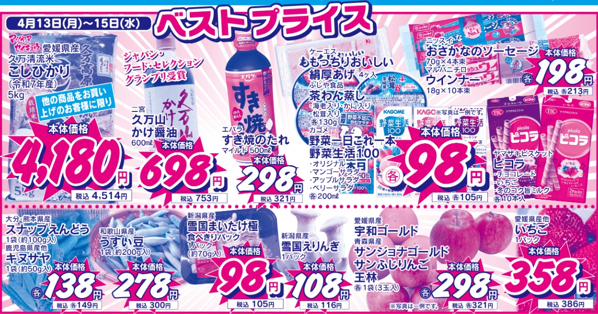 【松山生協│チラシ】4/9(木)~4/15(水)|お得な商品をチェックしよう!