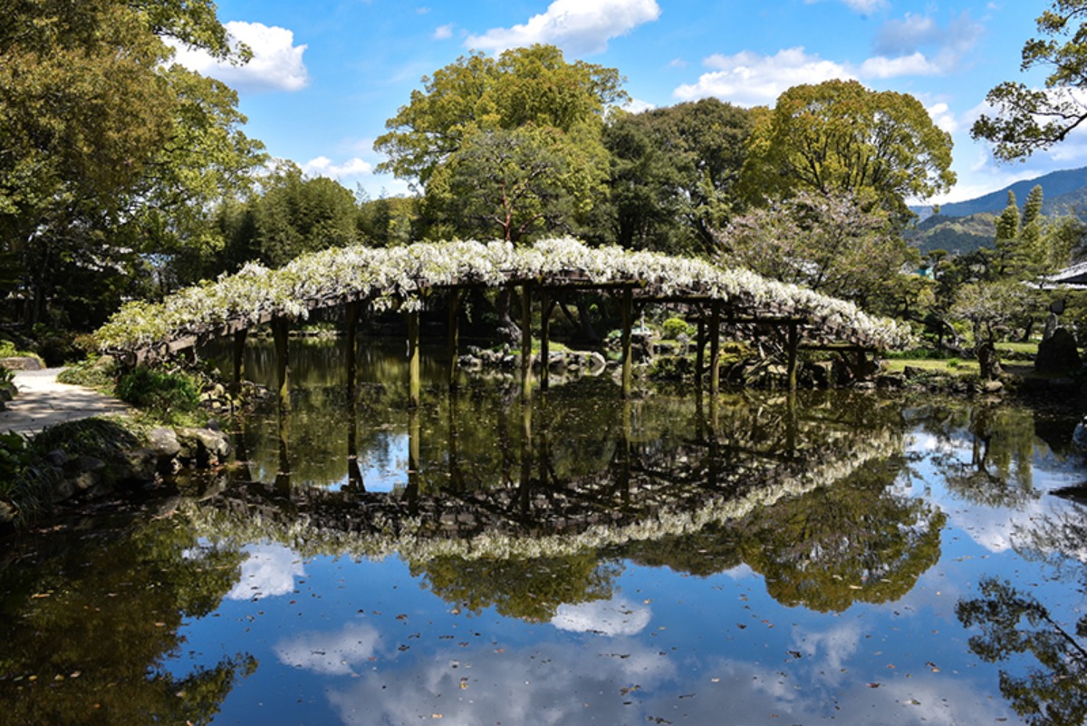 水面に映る藤の花と、歴史が息づく庭園で過ごす春の絶景体験