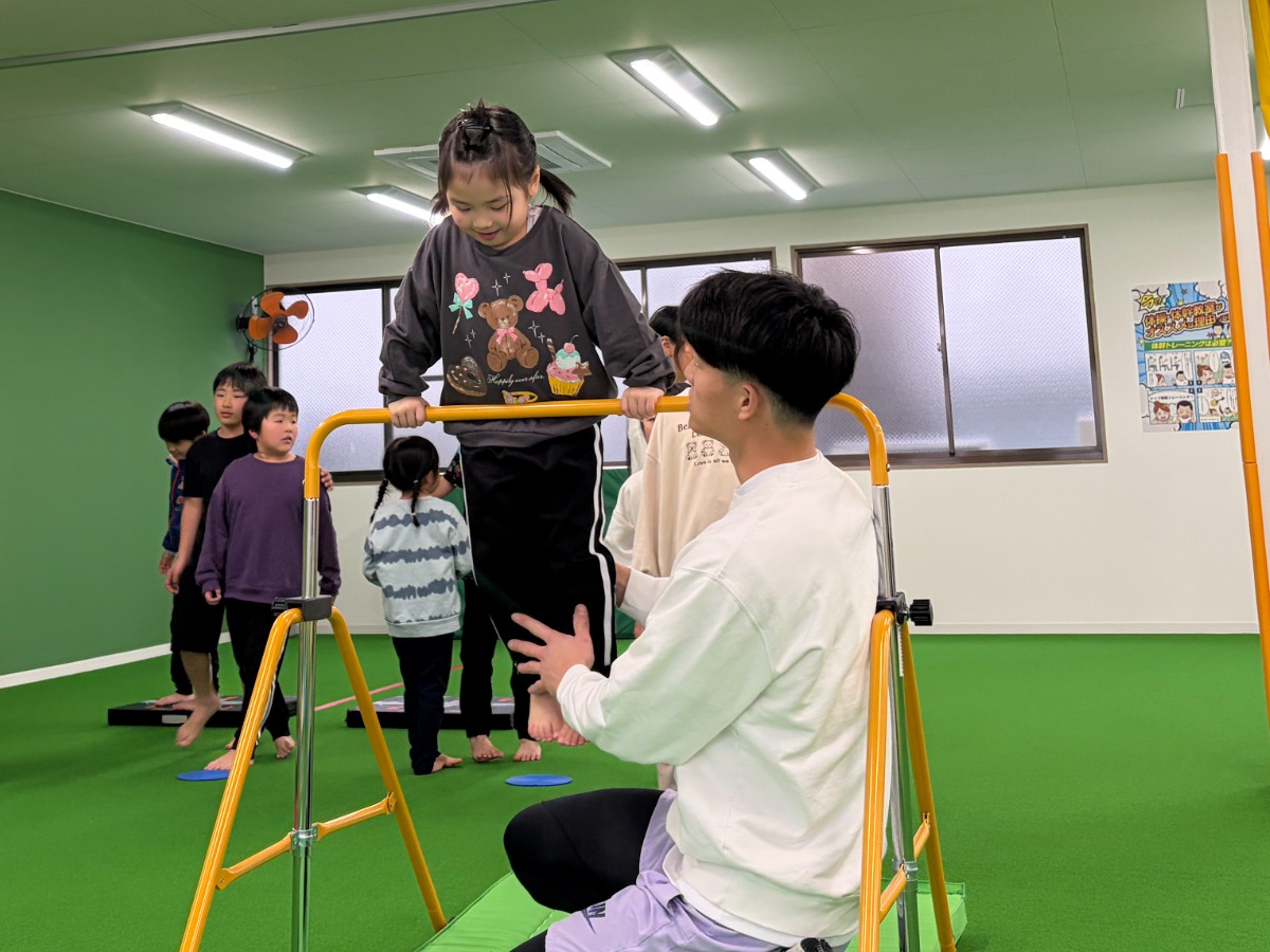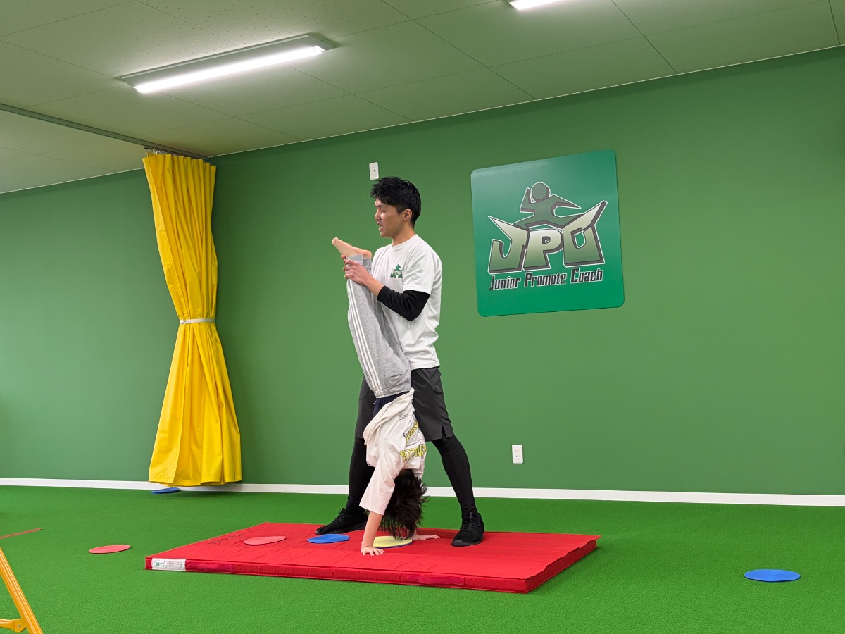 さらに、鉄棒やマット運動で逆立ちの練習をしたり、足を上げてバランス感覚を養ったり、跳び箱に挑戦したりと内容は盛りだくさん。