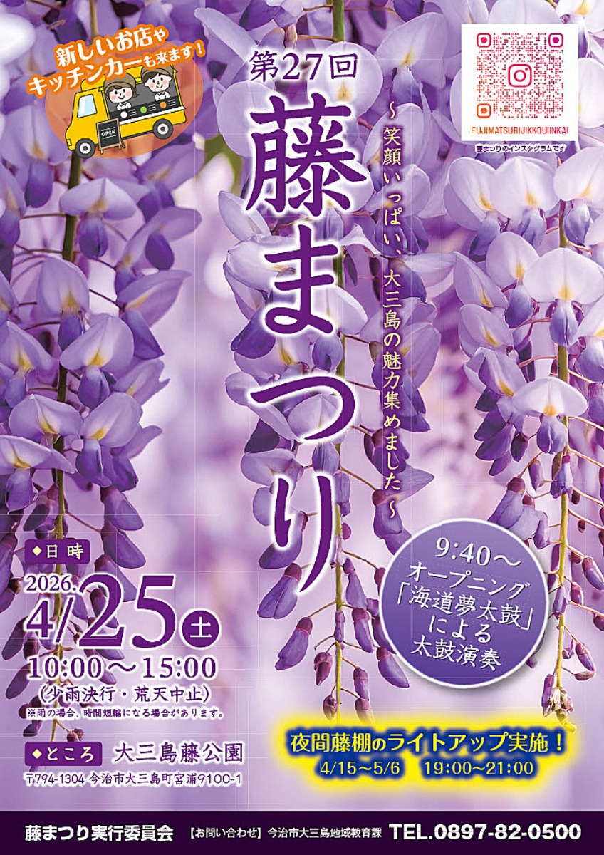 春の心地よい陽気に包まれる時節に、愛媛県今治市の大三島藤公園では今年も「藤まつり」が開催されます。