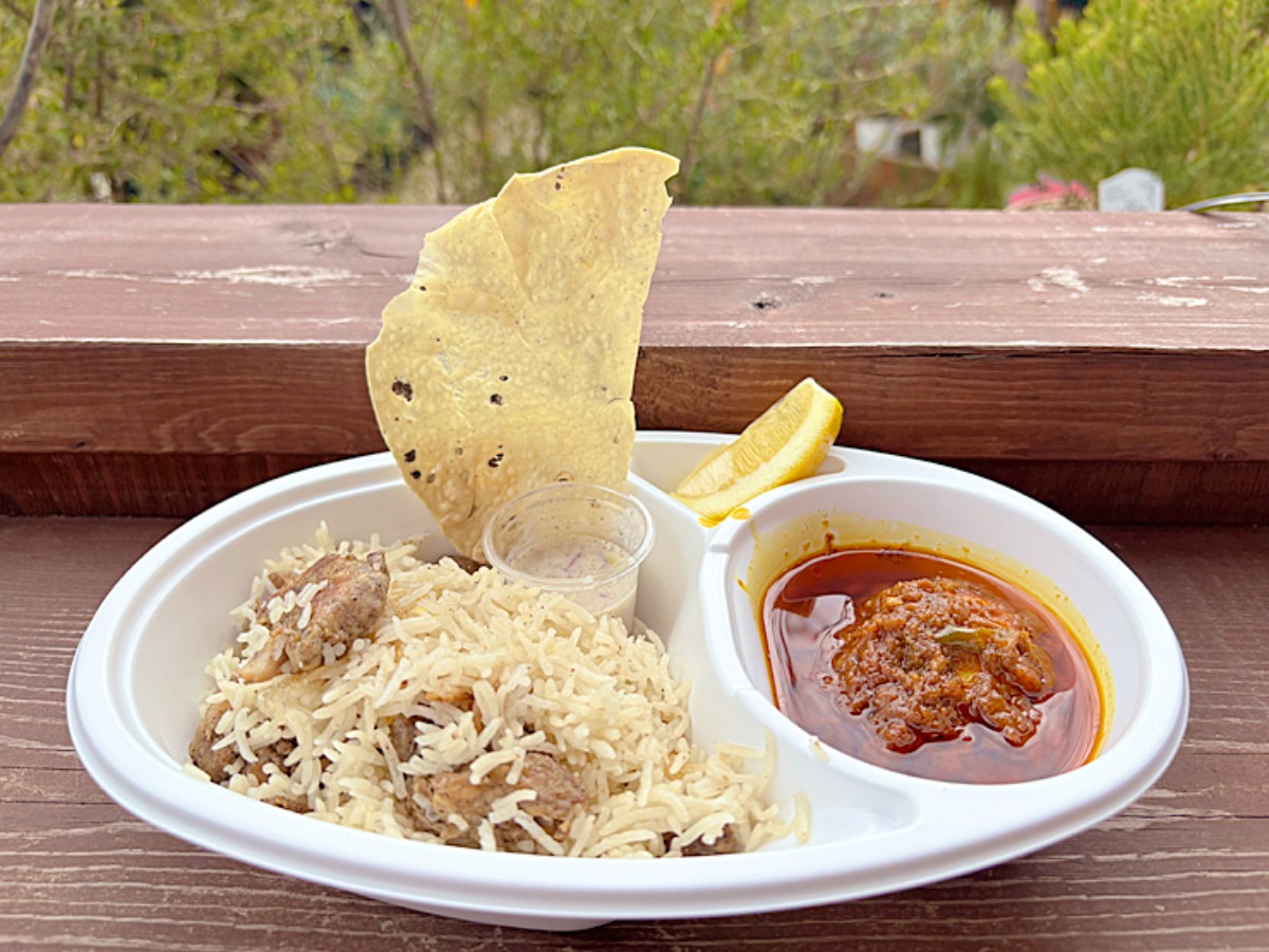 優しい味付けのビリヤニに、ピリッとスパイシーなカレーと程よい酸味のライタがたまりません。