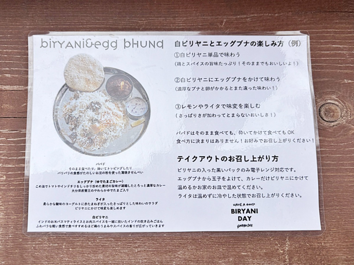 オーダーしたのはチキンビリヤニとスパイスカレー、半熟卵のセット。