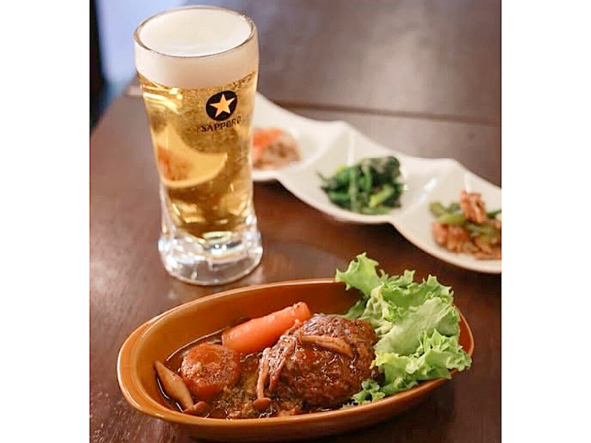看板メニューは、じっくり時間をかけて仕上げる「煮込みハンバーグ」です。