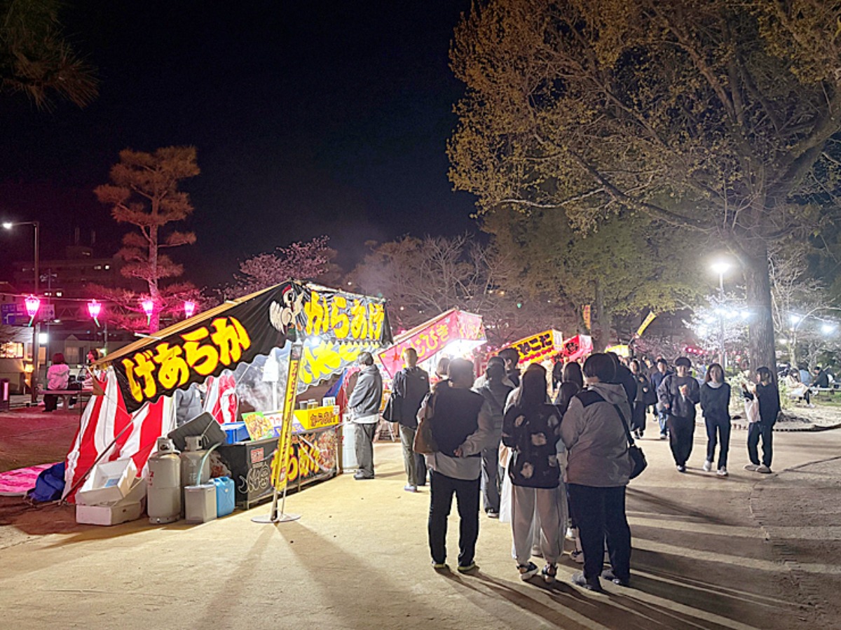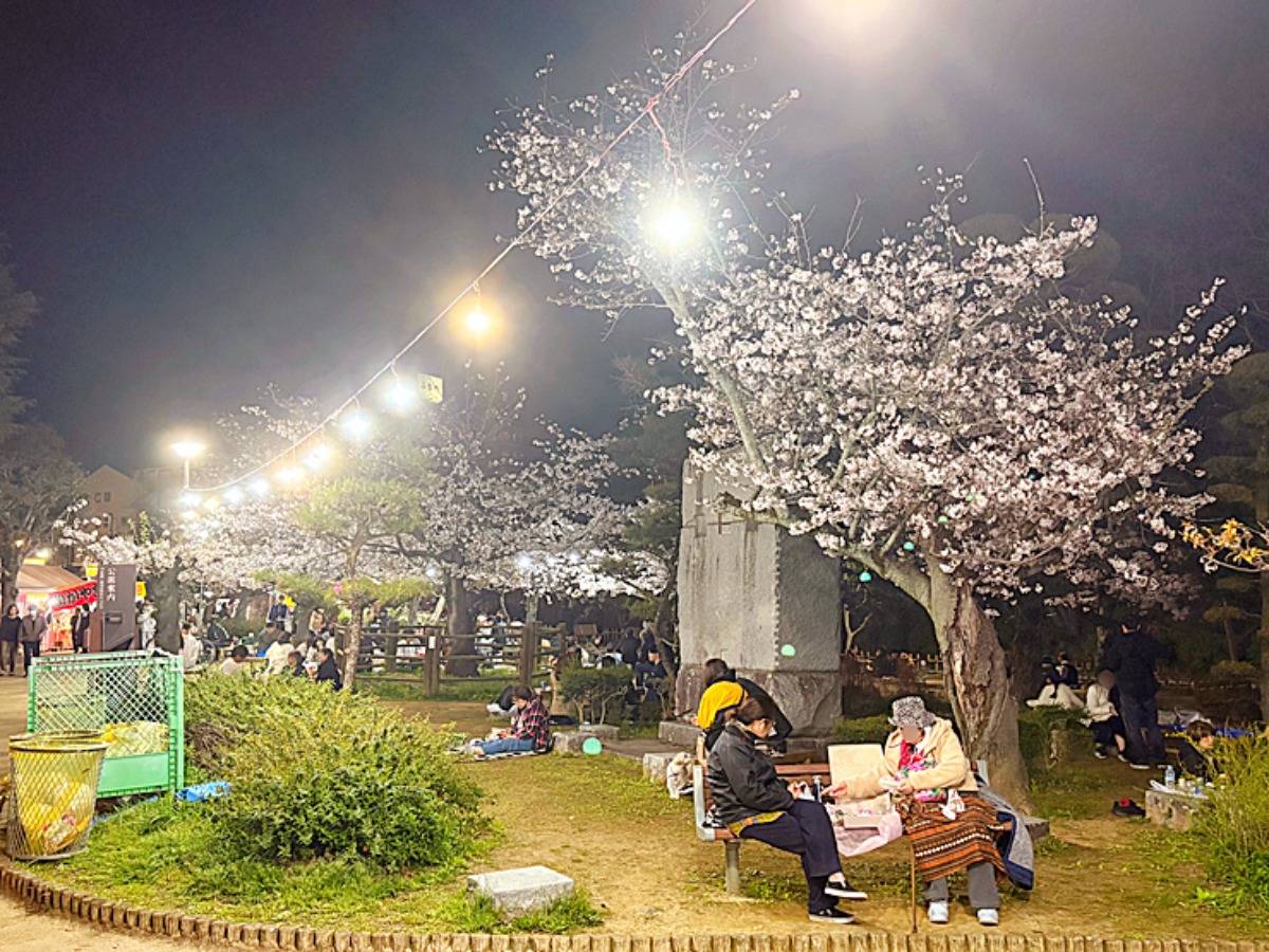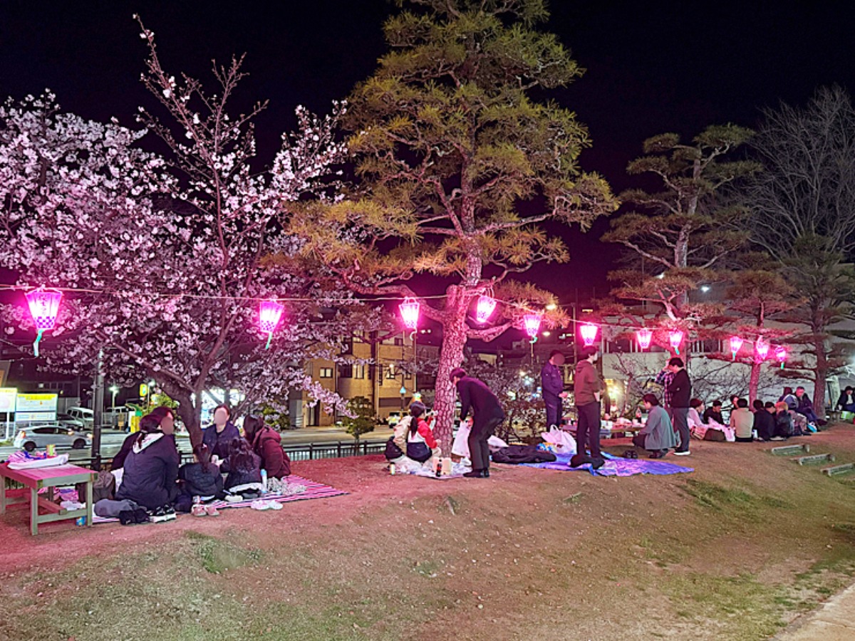 話を聞くと、早い人は夕方頃から場所取りをしてくれていたそう。周辺駐車場も私が来た時にはあちこち満車ばかりだったので、夜桜見物を予定している場合は可能なら日が沈む前に動き出すのが得策のようです。