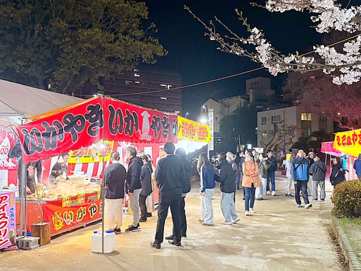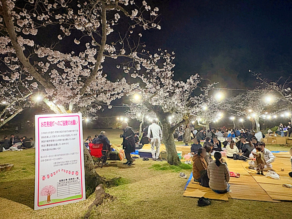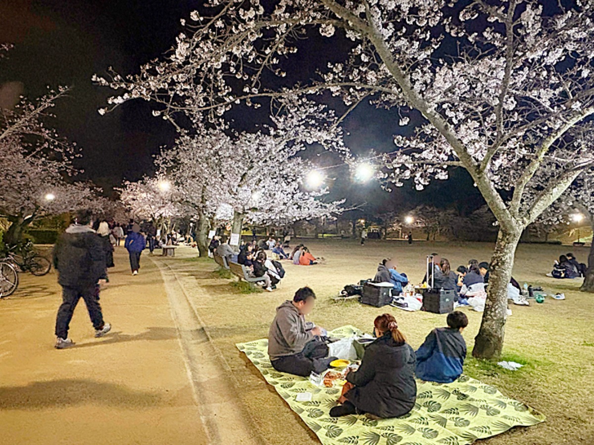 話を聞くと、早い人は夕方頃から場所取りをしてくれていたそう。周辺駐車場も私が来た時にはあちこち満車ばかりだったので、夜桜見物を予定している場合は可能なら日が沈む前に動き出すのが得策のようです。