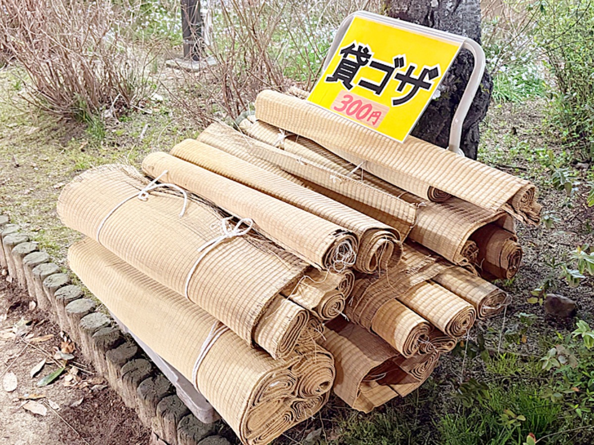 ですが公園内には、有料で利用できる貸しゴザも臨時登場!手ぶらで来れて、使った後はそのまま放置で帰って大丈夫なようでした。