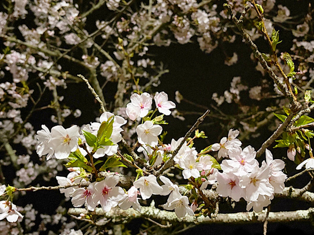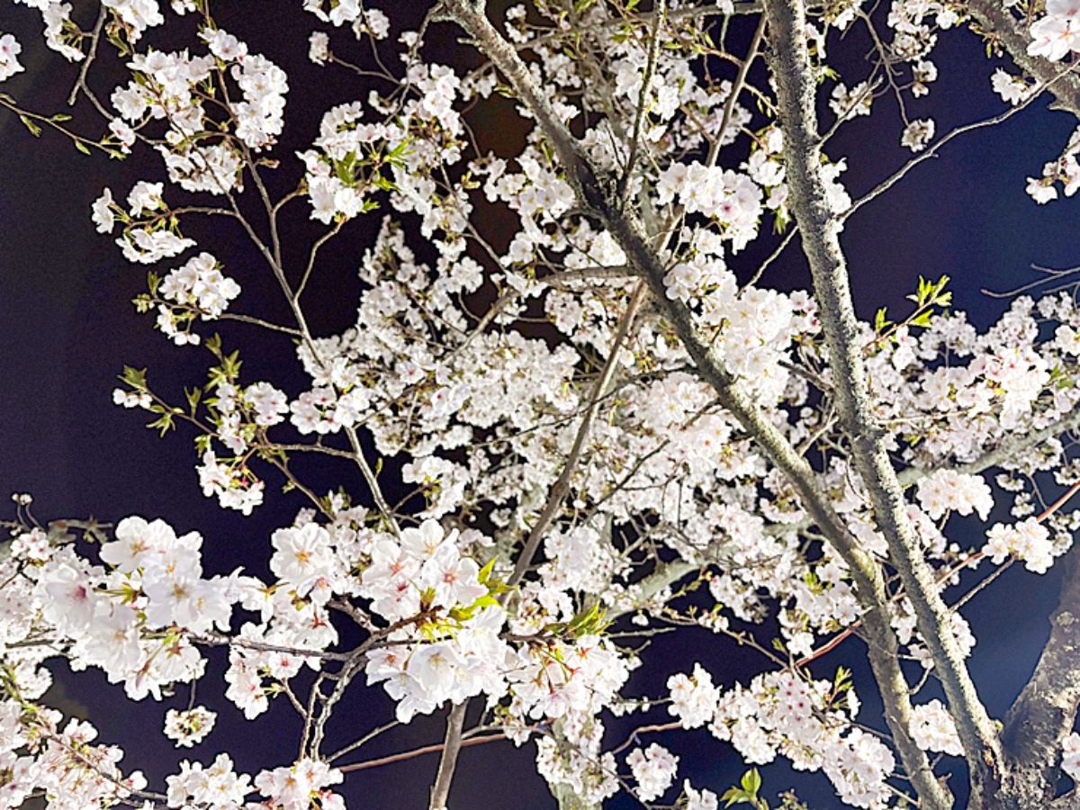 翌日が雨だったので、キレイに咲き誇る桜を見るにはまさにベストタイミングだったかも。来年は昼のお花見もしたいですね~。