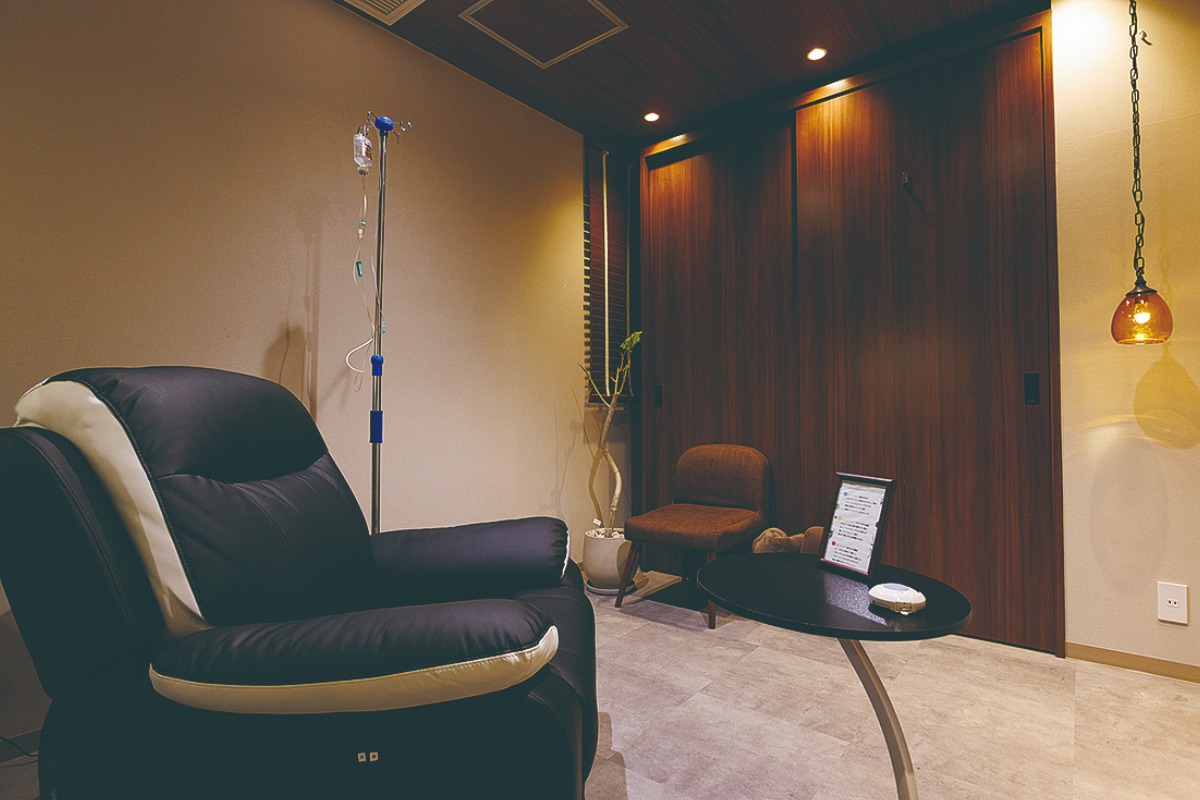 「高濃度ビタミンC配合の点滴」や「艶玉点滴」「にんにく注射」など、男女問わず日頃の疲れや体調を整える多彩なメニューを豊富に揃えている。