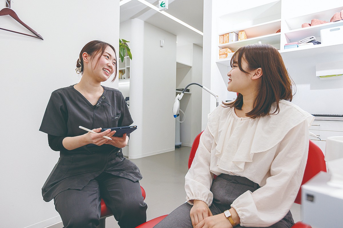「女性に多いのは、新社会人や進学をきっかけに、初めてのホワイトニングに挑戦したいという方や、結婚式や前撮り前にどれぐらいの期間が必要ですか?と相談に来る方などが多いですね。一方で、近年は男性の相談者も年々増えており、営業職のビジネスマンから自営業の方、また長年の喫煙習慣から、歯の黄ばみが気になると仰る方まで。年代も20~50代と非常に幅広い世代の方が来院されます」と南さんは話す。