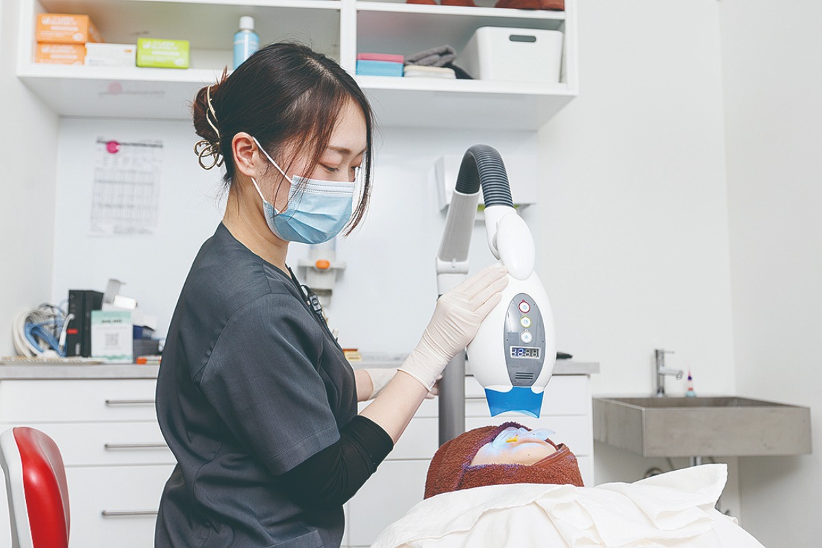 ▲ホワイトニングの知識豊富なスタッフが治療をしっかりサポート