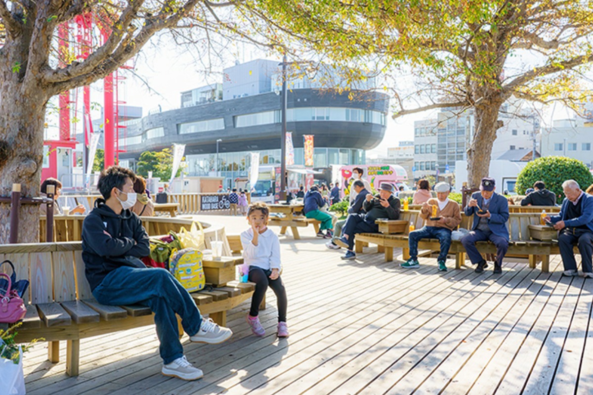 会場内にはウッドデッキやベンチが多数設置されており、その場で購入したものを堪能しながらゆったりと過ごせます。