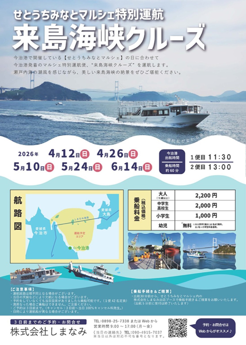 さらに、マルシェ開催日限定で「来島海峡クルーズ」の特別運航も実施。