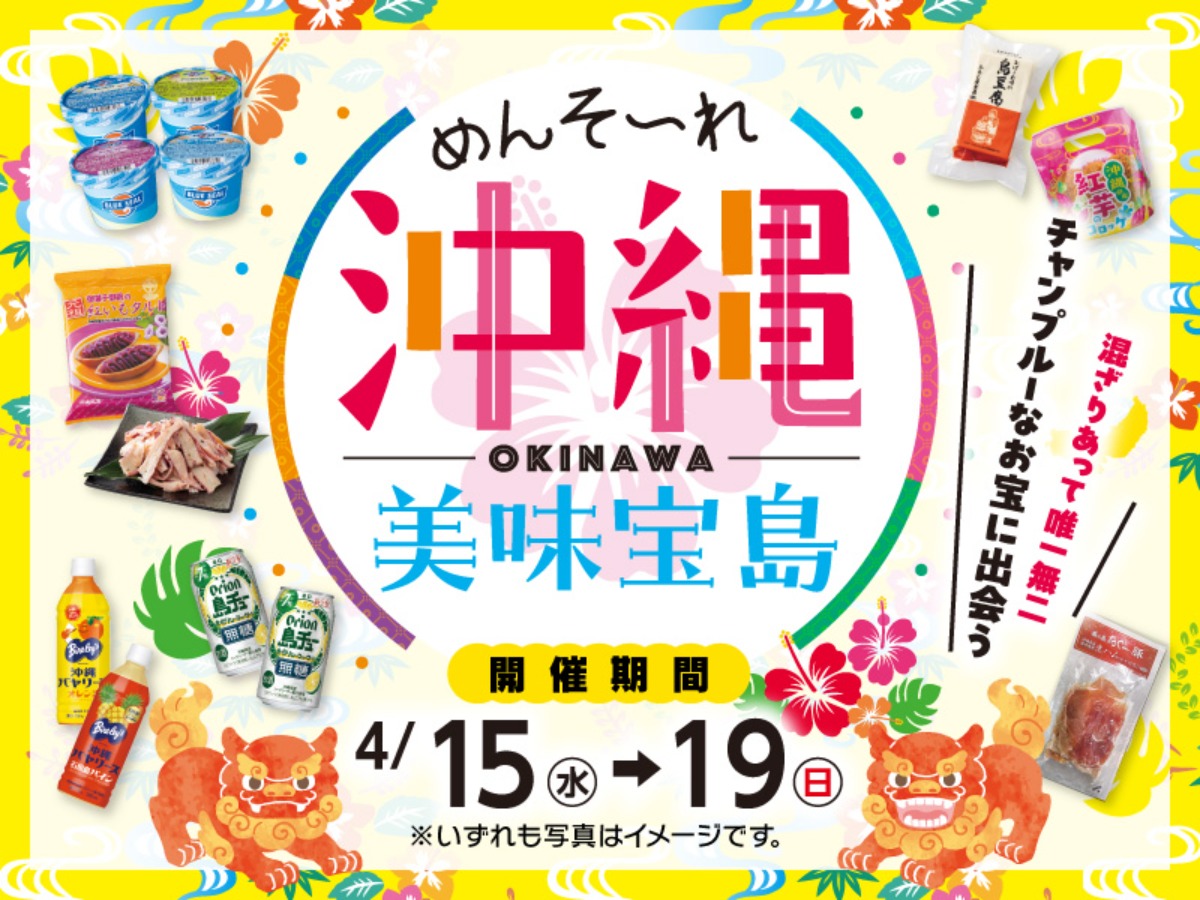 フジ店頭では4月15日(水)〜19日(日)まで、「めんそ〜れ沖縄 美味宝島」と称して沖縄の人気グルメが勢揃い!スイーツから食材まで、南国の島の恵みに出合えますので、ぜひこの機会に足を運んで、自宅でも沖縄の味を楽しんでみてくださいね。
