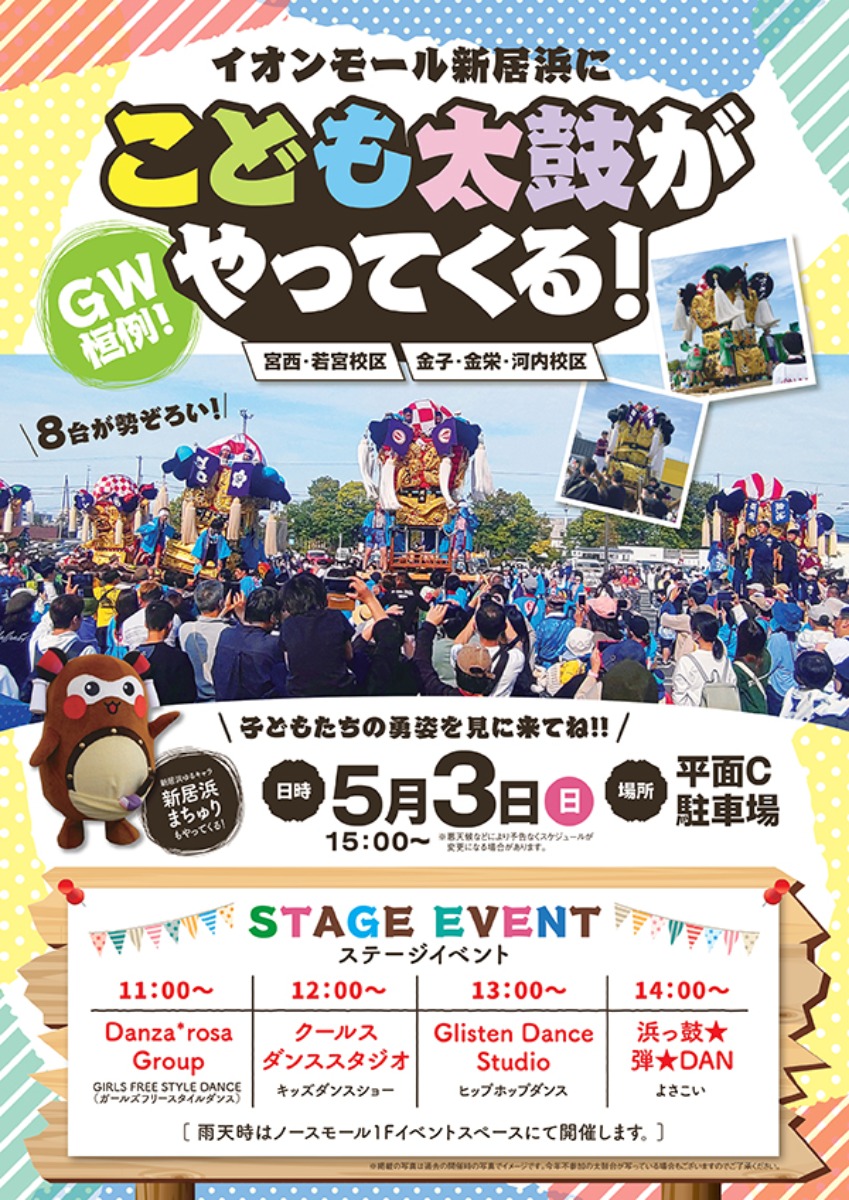 ゴールデンウィークの思い出作りにぴったりな「子ども太鼓フェスタ」が、イオンモール新居浜で今年も開催決定♪