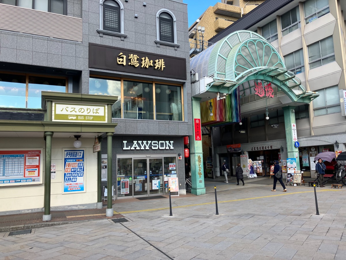 ローソン松山道後駅前店は、伊予鉄道・市内電車「道後温泉駅」を降りて1分とアクセス良好♪