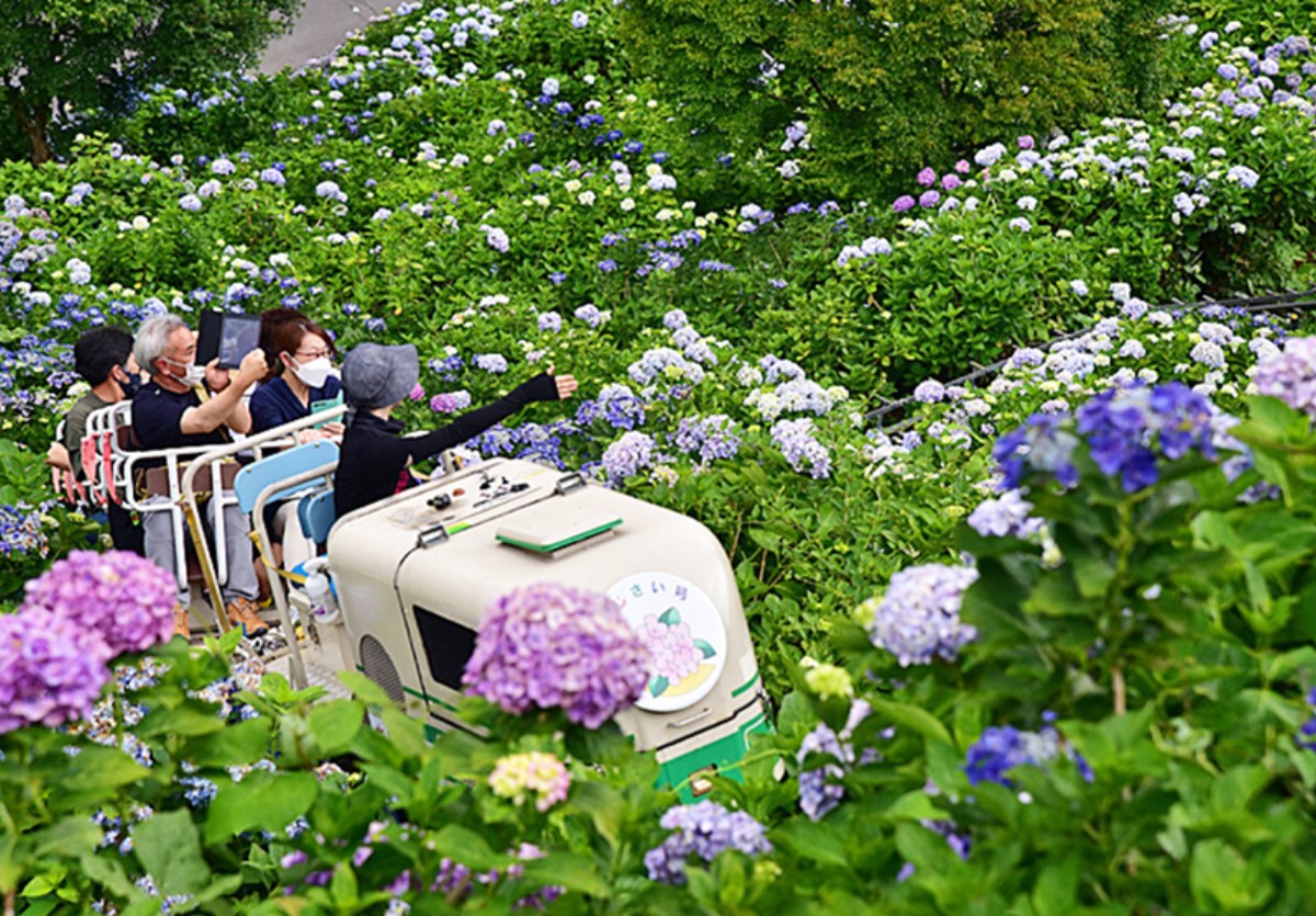 標高差のある丘陵地に咲き誇るのは約2万株のあじさい。
