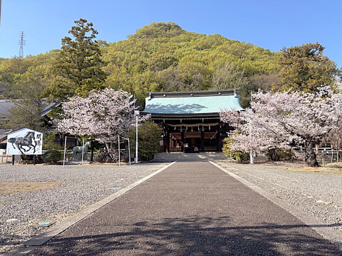 威風堂々たる佇まいと桜並木に映える大鳥居!