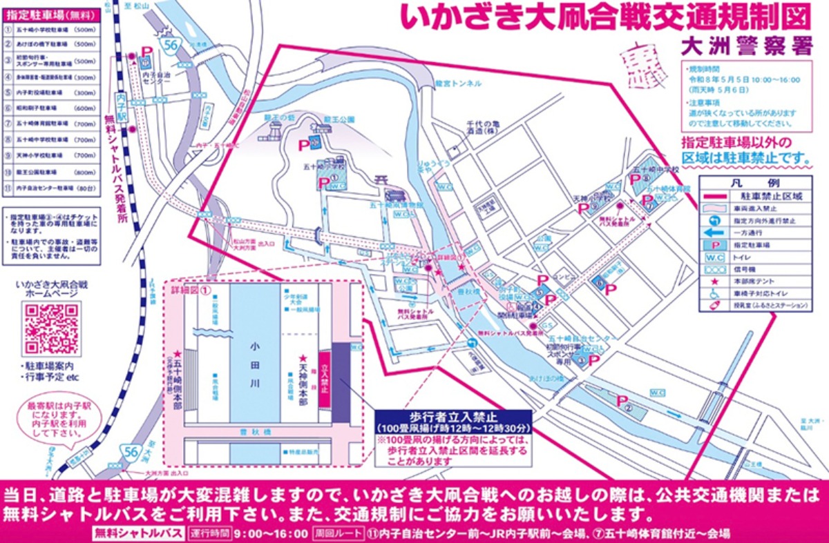 イベント当日は混雑が予想されるため、公共交通機関や無料シャトルバスの利用がおすすめ。