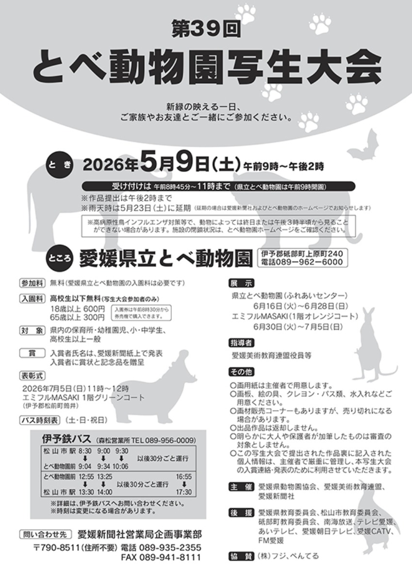 そんな刺激と楽しみに満ちた「とべ動物園写生大会」、ぜひ奮ってご参加くださいね!