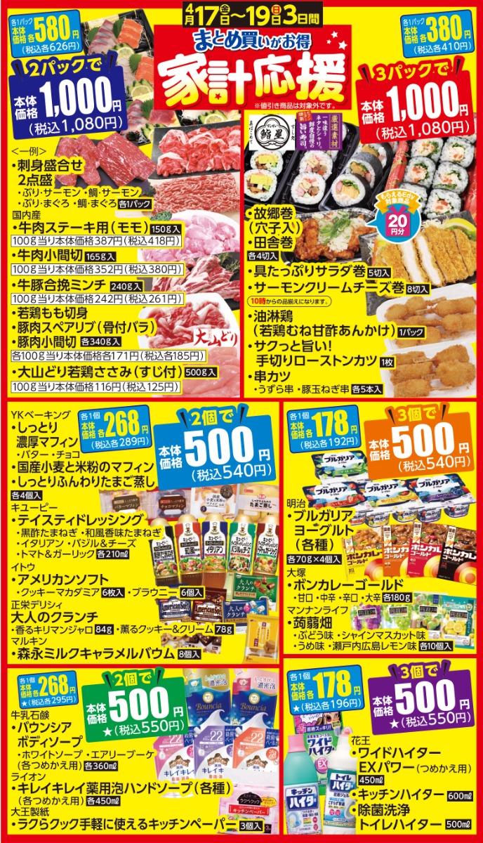4/17(金)~4/19(日)まとめ買いがお得 家計応援