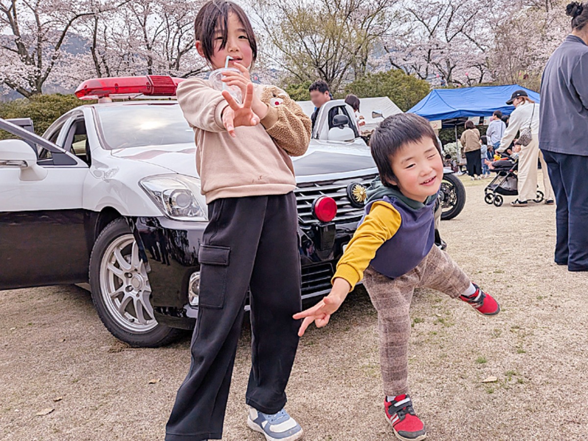 そんな中、会場にはパトカーと白バイも登場!実際に近くで見ることができ、記念写真を撮らせてもらいました。