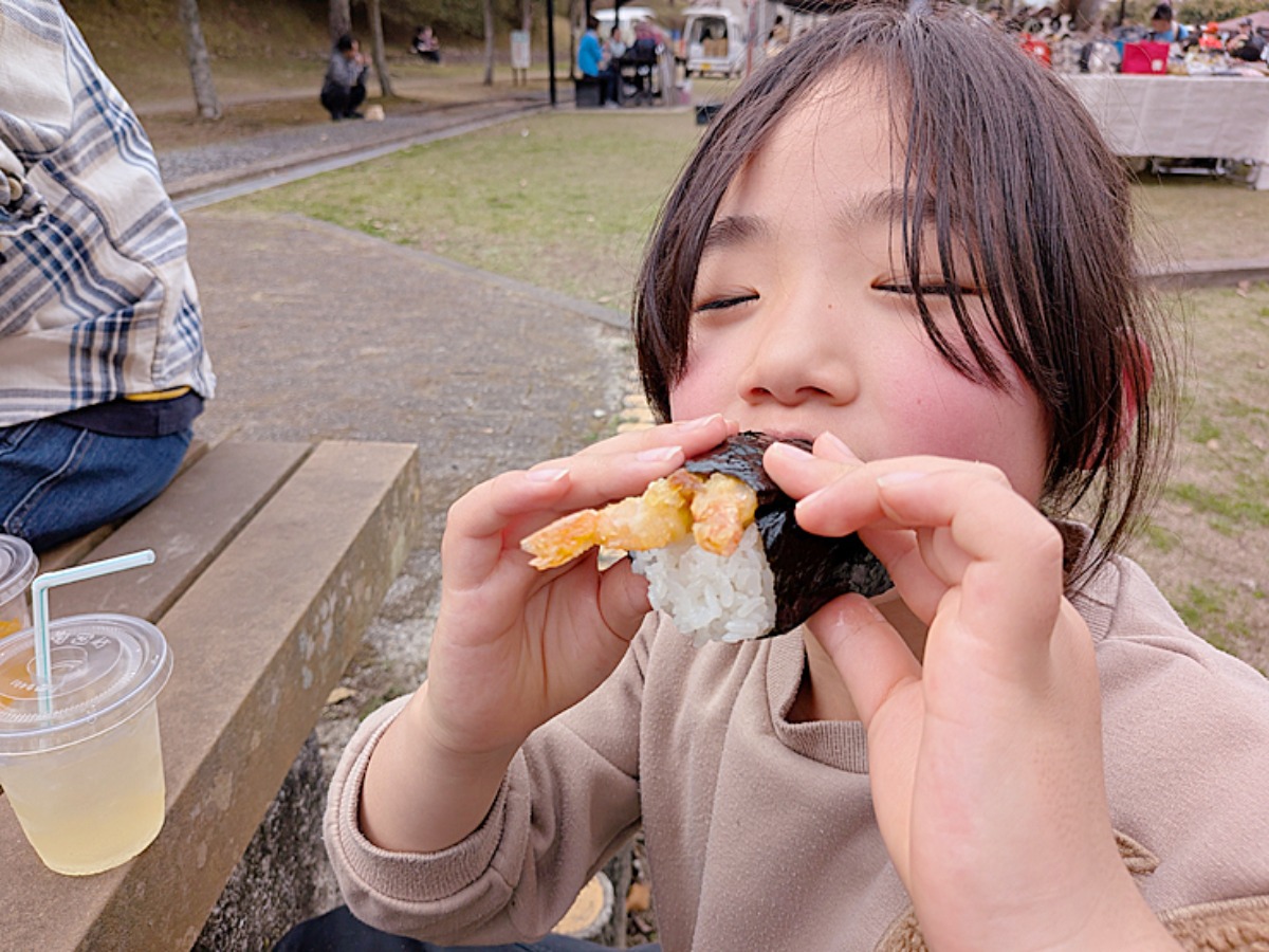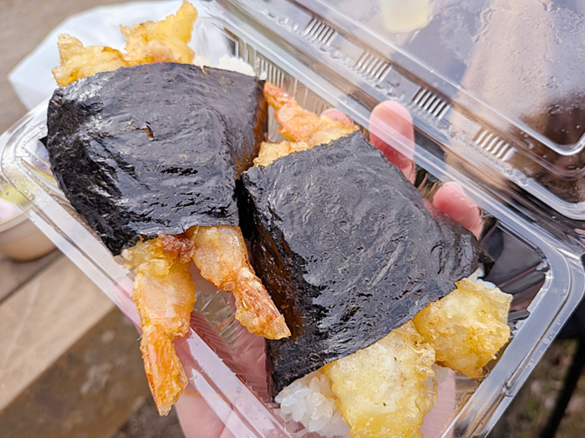ふわふわのおにぎりに、じゅわっと味の染みたエビの天ぷら。これはもう、間違いない組み合わせです!