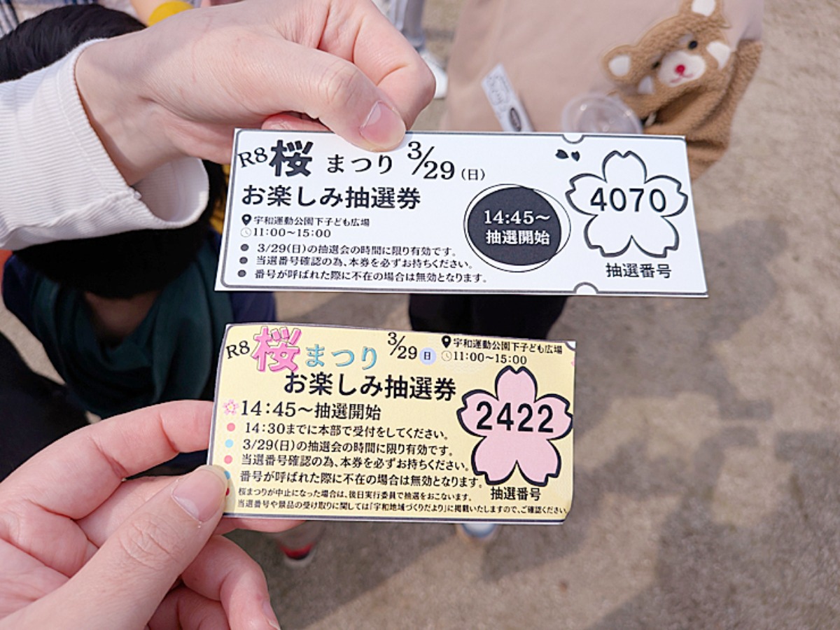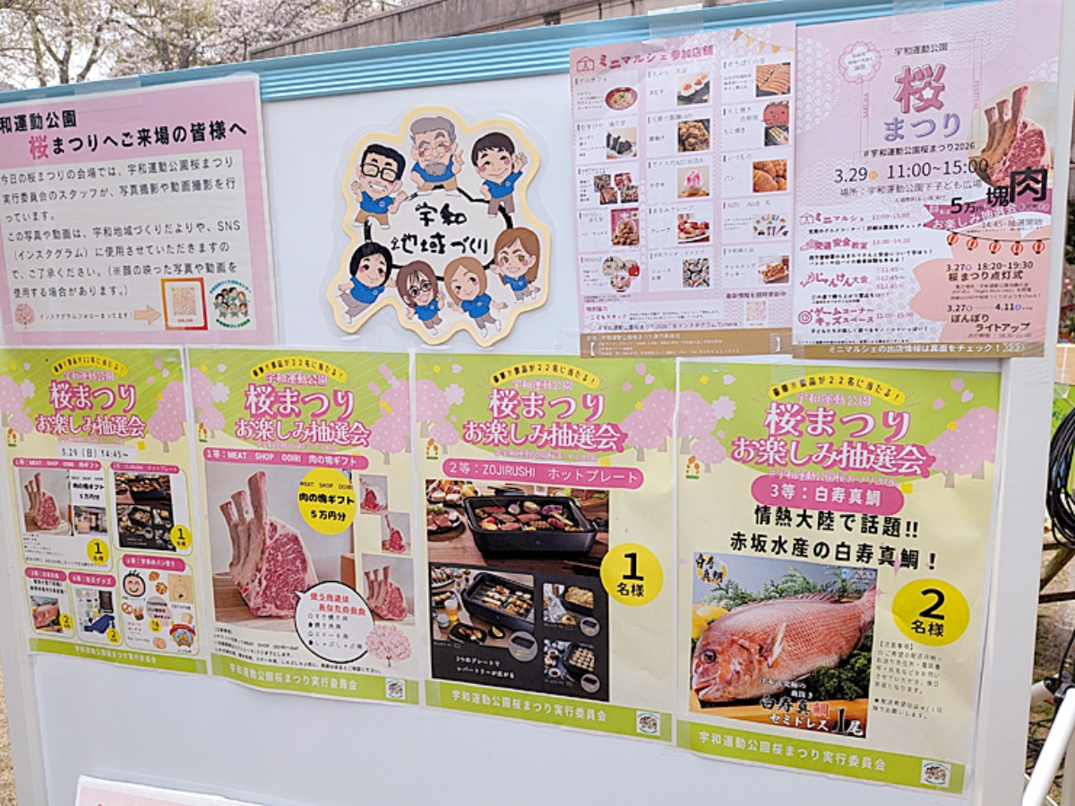 軽い気持ちで参加した宇和運動公園の桜まつりでしたが、想像以上の盛り上がりに驚きました。キッズスペースやゲームコーナーもあり、子どもたちも大満足のイベントです。