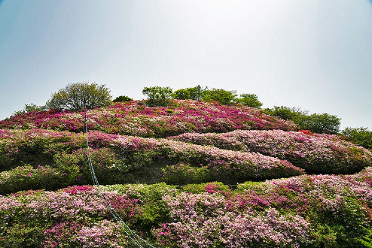 冨士山公園の最も大きな見どころは、山全体を覆い尽くす約6万3千本のつつじです。