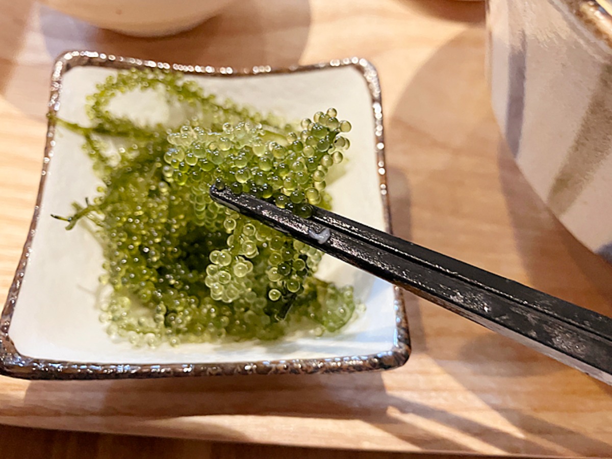 そして、何より一番衝撃的だったのが「海ぶどう」。見た目もきれいで、別名「グリーンキャビア」とも呼ばれるそう。