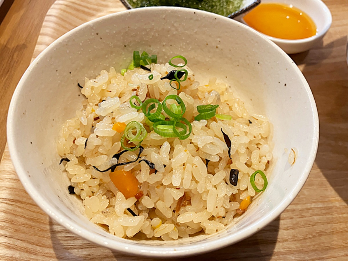 豚肉の出汁とかつお出汁で炊き込んだ「じゅーしー」。旨みたっぷりで箸が止まらなかったです。