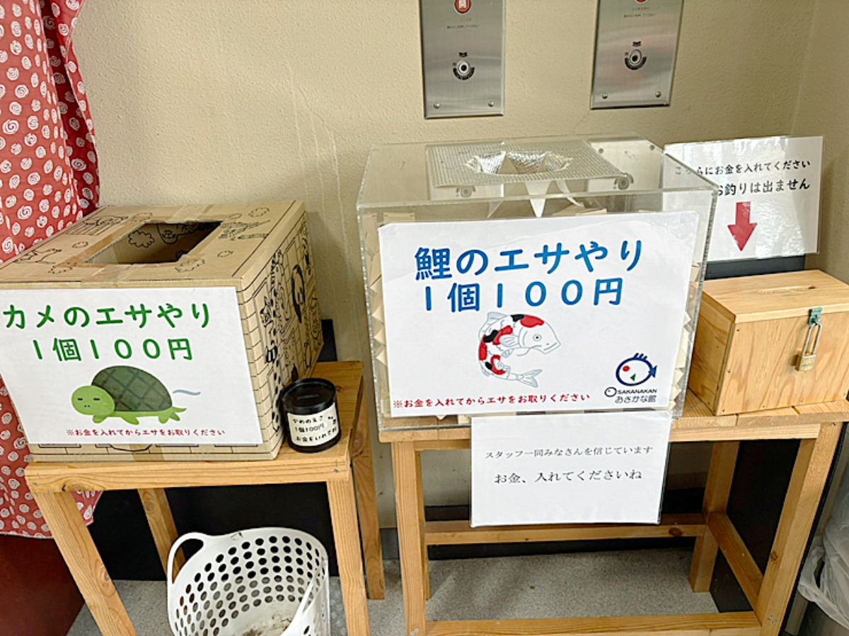 エサは館内の鯉の池の近くにあります。