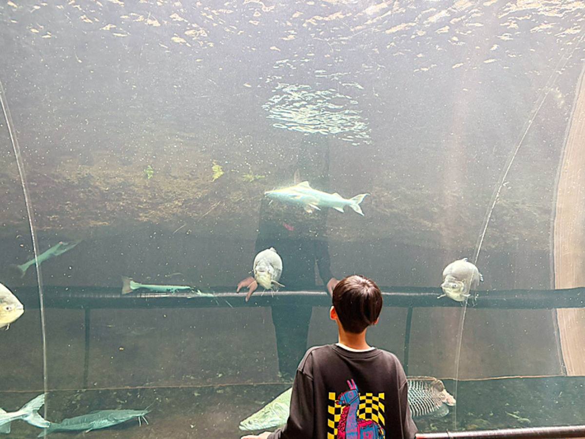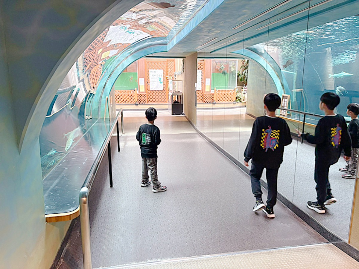 大きな魚が自分の真上を通り過ぎる瞬間は迫力満点。魚のお腹の部分も間近で観察でき、親子でワクワクできる素敵な空間でした。