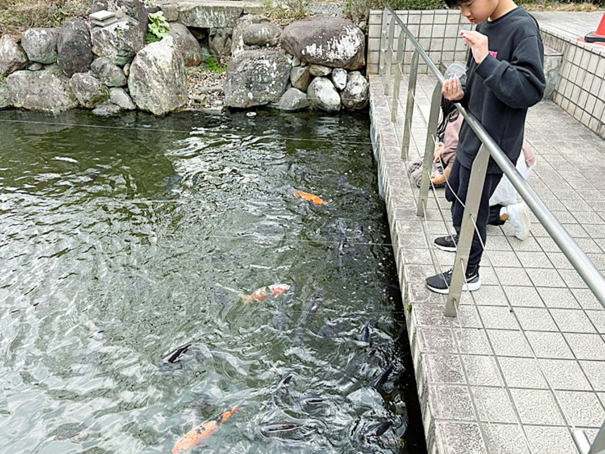 次は鯉のいる池へ。さっきの亀とは違って、エサをあげた瞬間に一気に集まってくる鯉。その後、あっという間に完食。