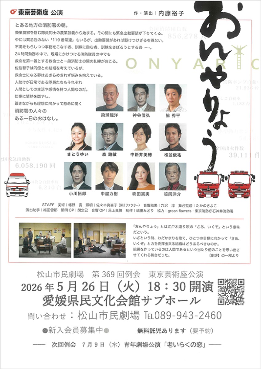 【東京芸術座 公演「おんやりょう」】懸命に働く消防署の日常を描く(愛媛/松山市)