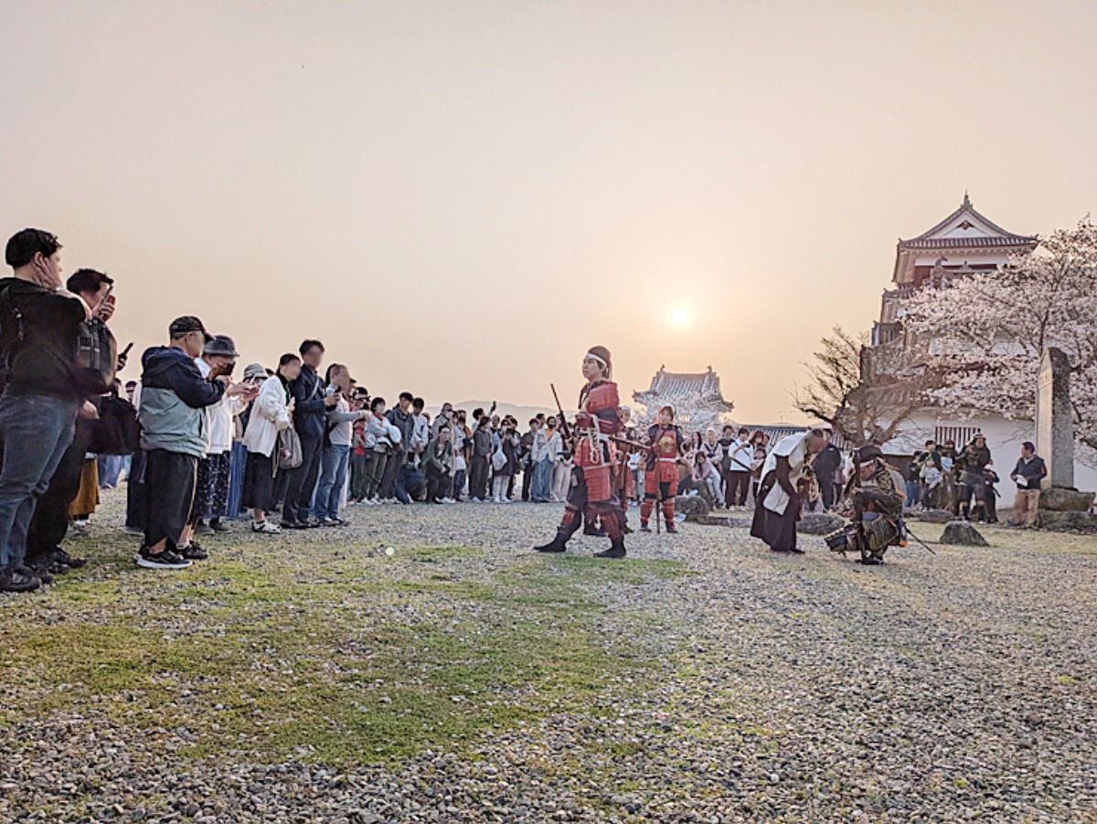 歴史ある大洲城のそばで行われる演武は、まるでその時代に入り込んだような感覚に。にぎやかなマルシェとはまた違った、特別な体験となりました。