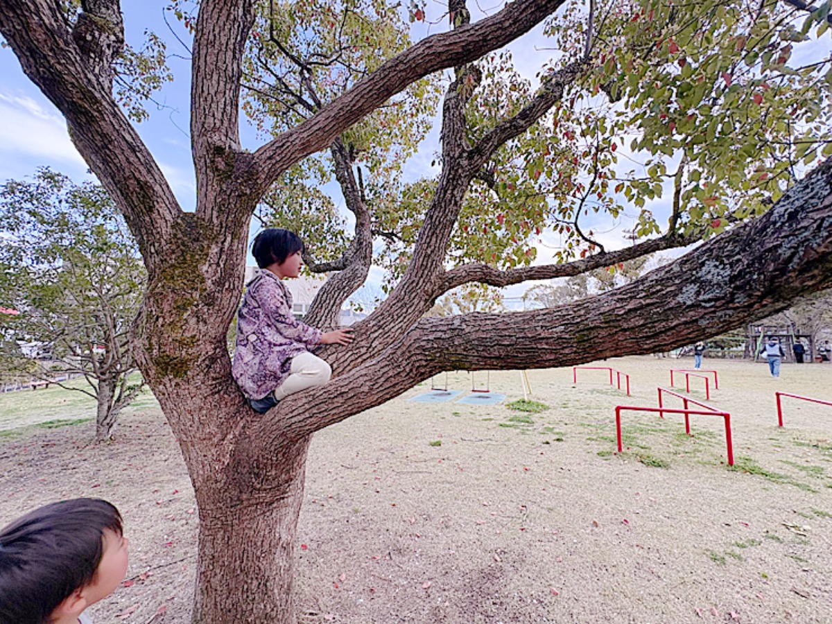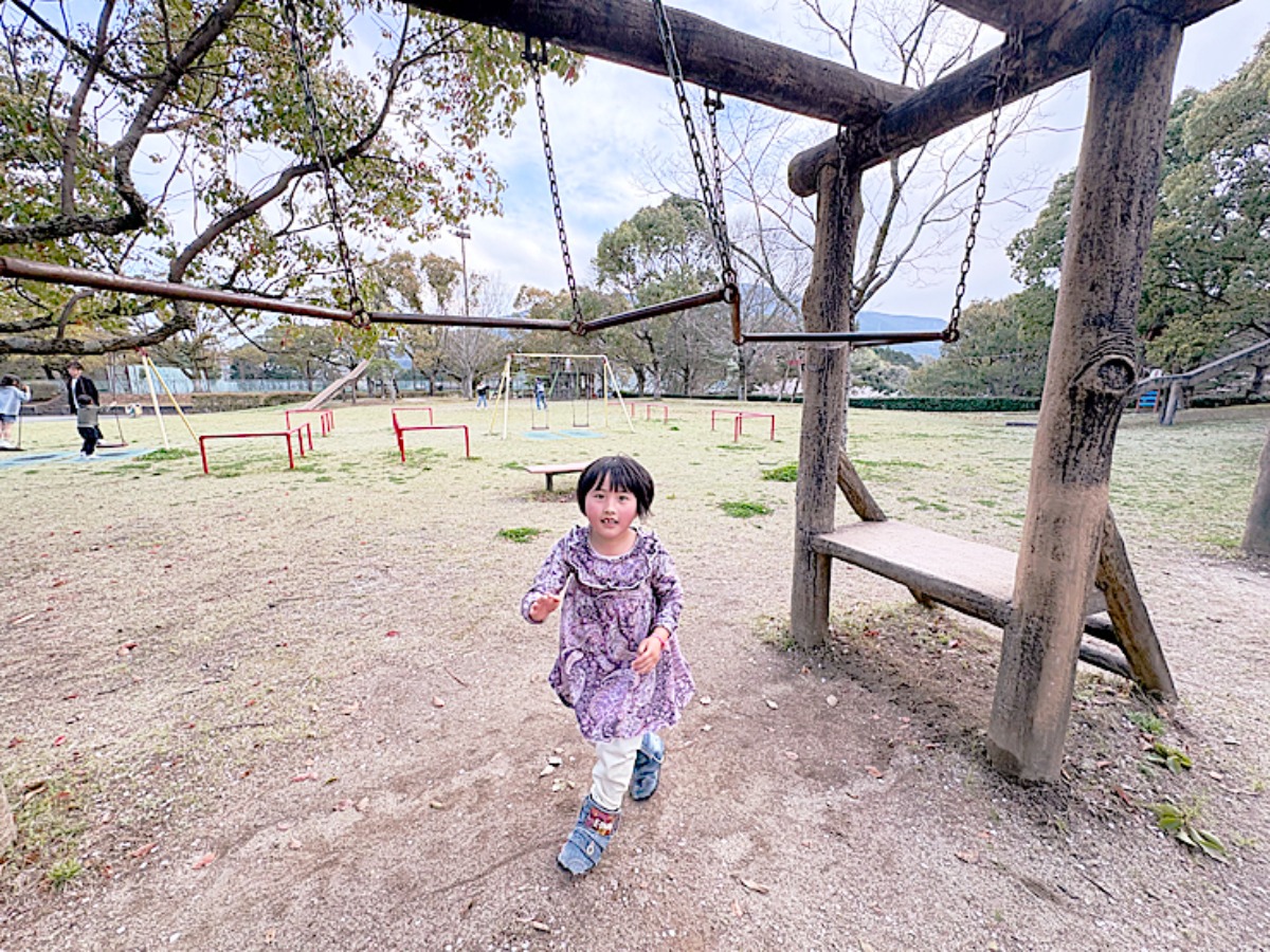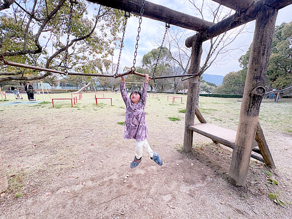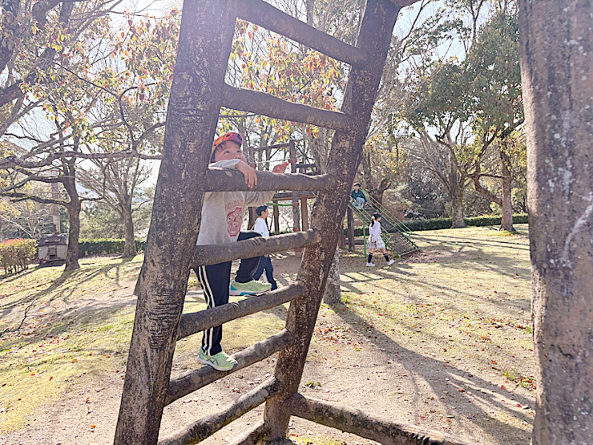 アスレチックみたいな遊具もあり、子どもたちはすぐに自分が気になる遊具に走ります。