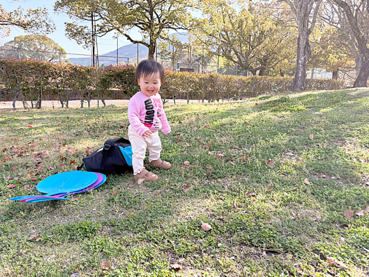 置いていかれた下の子は、たくさん歩くことができたり葉っぱも気になったり、置いていかれても全く気にせず嬉しそうです。