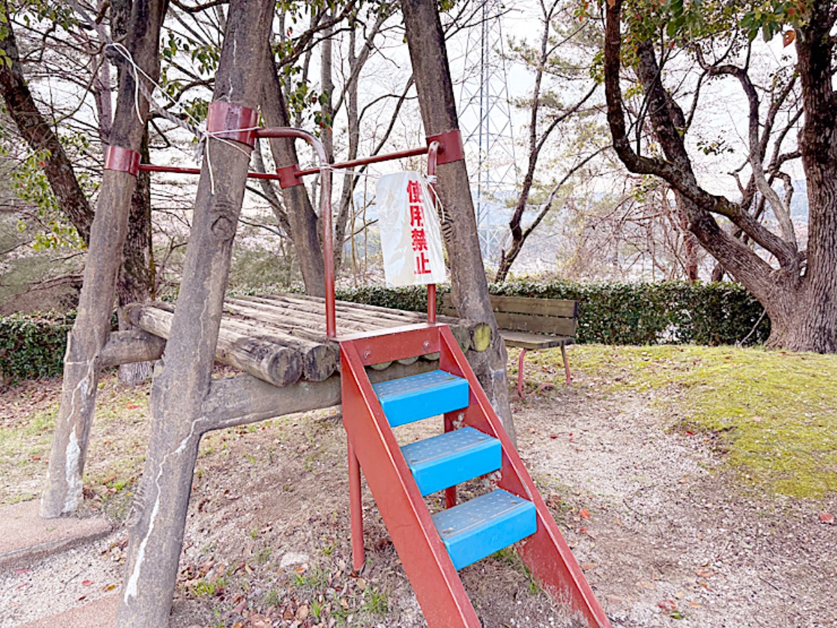 紐に乗ってシューと向こうに行き、戻ってくる遊具。子どもたちは大好きなので乗ろうとしましたが、残念ながら使用禁止になっていました。